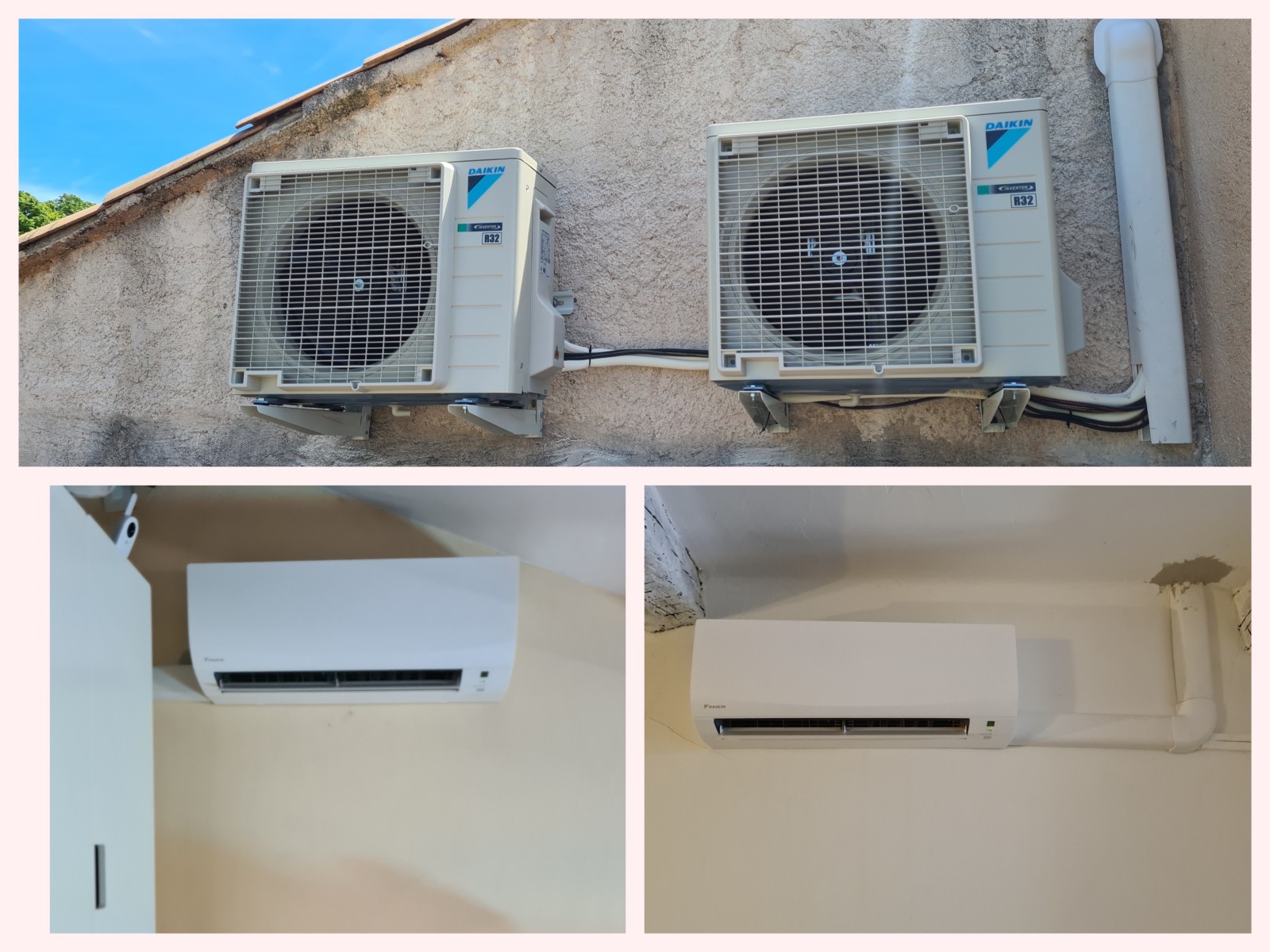 L’installation réalisée par ICP Rénov a consisté à poser deux unités monosplit Daikin. Un premier climatiseur de 3,5 kW a été installé dans le salon d’une superficie de 35 m² avec cuisine ouverte, offrant ainsi une solution efficace pour refroidir ou chauffer cet espace. Un second appareil de 2,5 kW a été posé dans la chambre à l’étage, qui fait 25 m², pour garantir un confort optimal tout au long de l’année.
